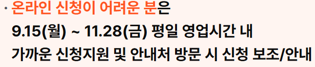 2025년 9월 15일 ~ 11월 30일까지 신청 가능합니다. 단, 신청은 한 번만 해도 3개월 전체가 적용됩니다.