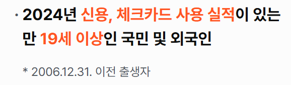 카드 실적 | 2024년 신용/체크카드 사용 실적 보유 |
